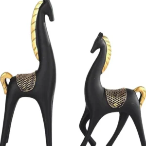 Long Neck Resin Horses Showpiece – Elegant Black Tabletop Figurine for Home & Office Décor