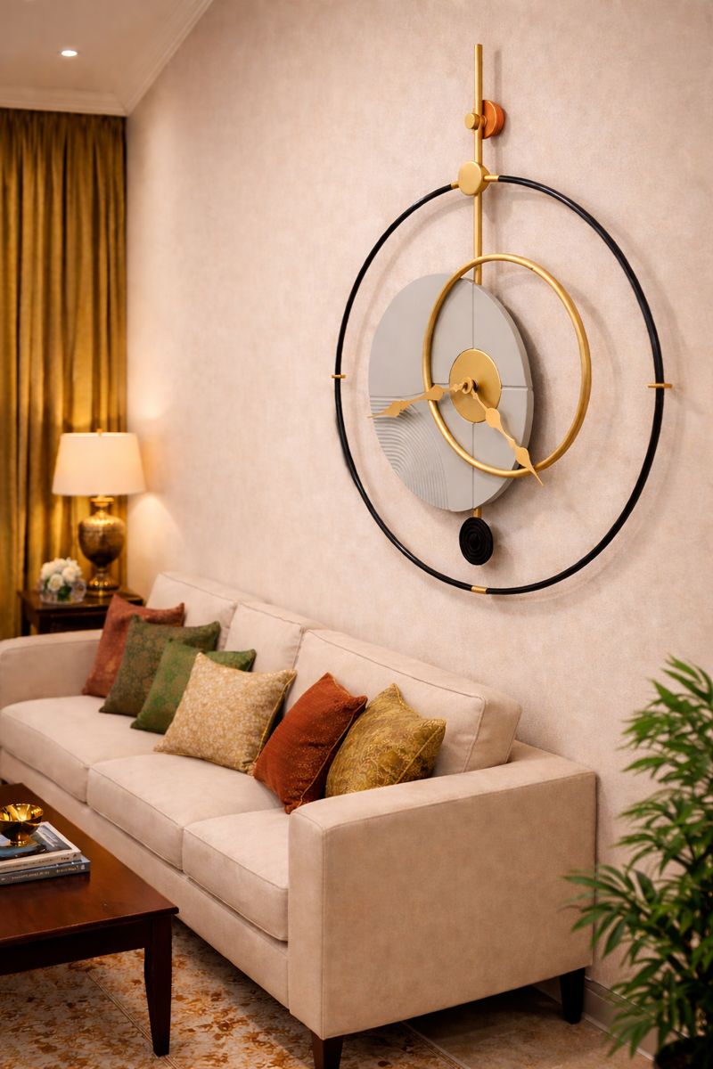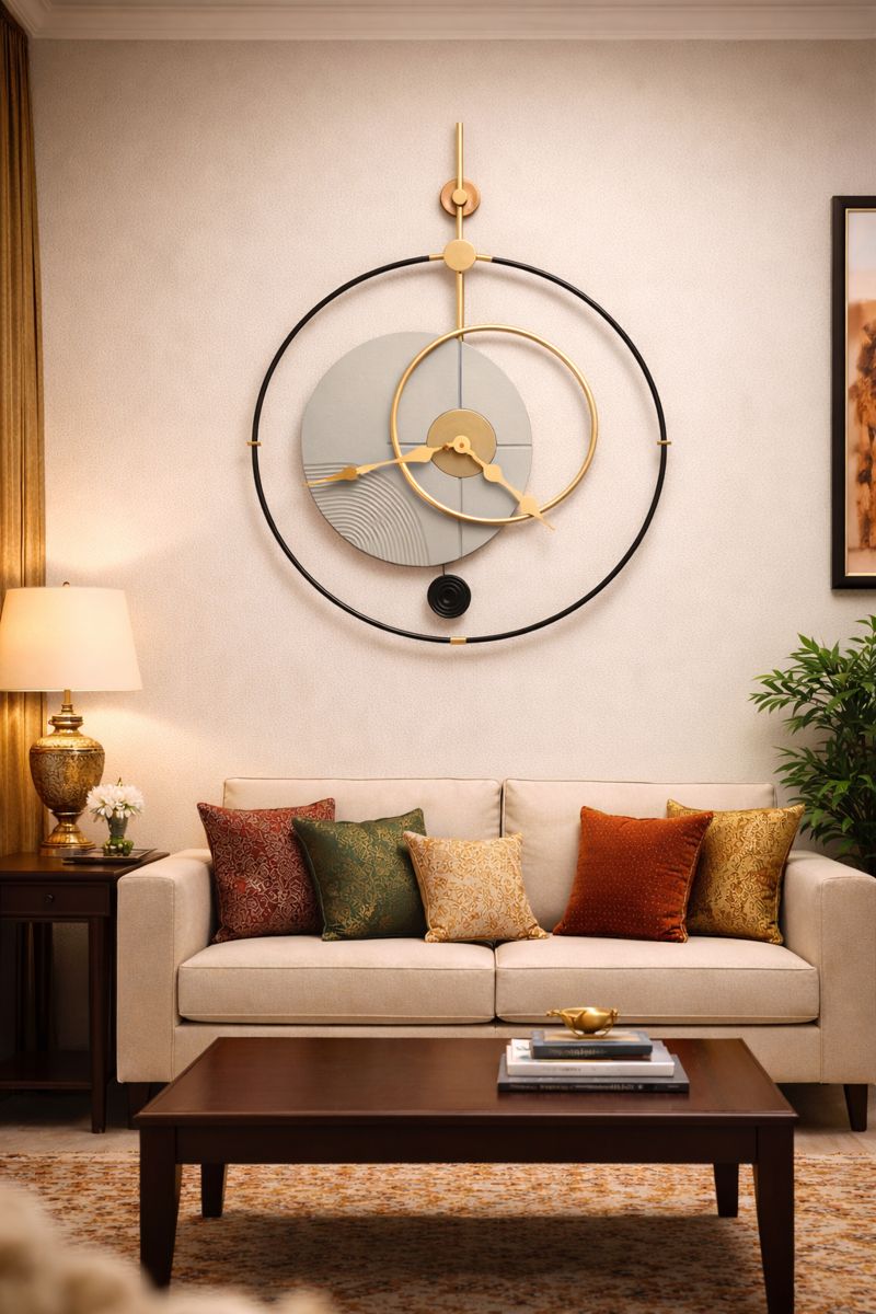 The sculptural form and clean lines make it ideal for contemporary Indian homes, adding visual interest without overpowering the space. Whether styled above a bed, console table, or sofa wall, this clock blends functionality with modern art aesthetics.
