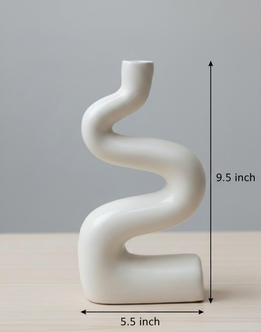 Add an artistic touch to your home with this modern sculptural ceramic vase, designed to elevate everyday interiors with effortless elegance. Featuring a unique abstract curved silhouette, this décor piece works beautifully as a planter for artificial or dried stems or as a standalone statement accent.