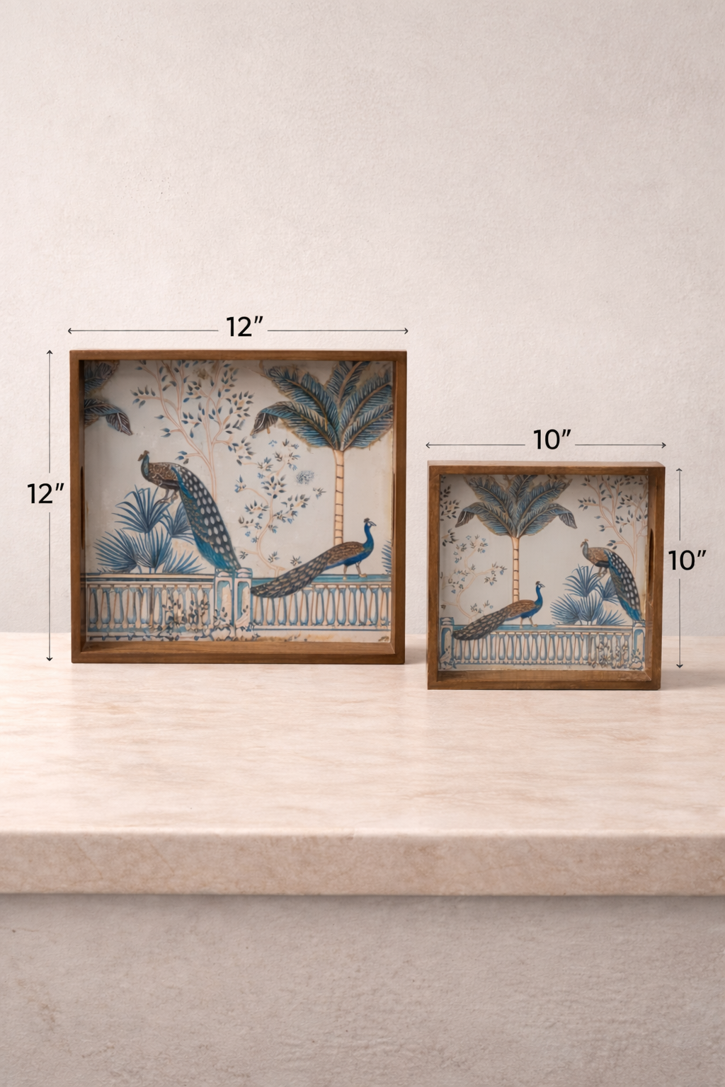 This set includes two premium wooden trays in 12×12 inches and 10×10 inches, designed to complement coffee tables, dining areas, consoles, and office desks. The sturdy wooden frame, smooth finish, and vibrant artwork make these trays a beautiful blend of functionality and style.
